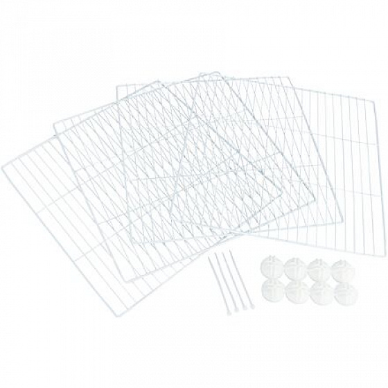 a csomag 4 darab 35 × 35 cm-es drótmezőt tartalmaz, a rögzítő tartozékokkal együtt