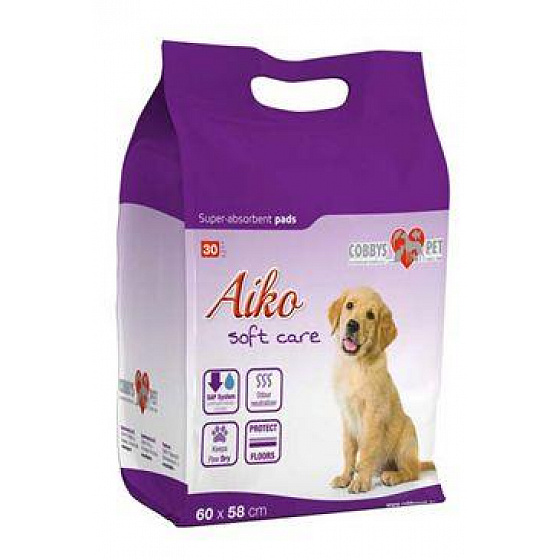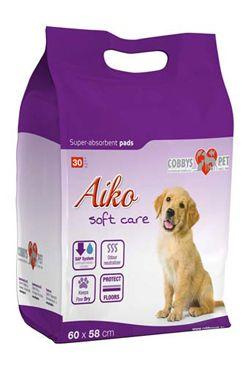 AIKO Soft Care - higiénikus betét kölyökkutyáknak, idősebb, inkontinenciában szenvedő vagy lábadozó kutyáknak. Szuper nedvszívó tulajdonságokkal és könnyen használható 5 rétegű párna. Nem csöpög - nem folyik ki - védi a padlót - szagtalanítás - gyors száradás. Használja a párna nedvszívó oldalát felső részként. Ne hagyja, hogy kutyája megharapja, széttépje vagy megedje a szőnyeget. A fulladásveszély elkerülése érdekében tartsa ezt a terméket gyermekek elől elzárva!