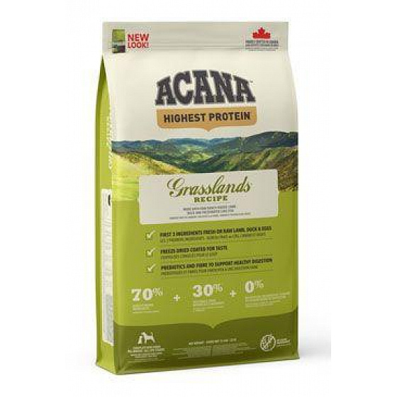 AZ ACANA GRASSLANDS SZABADON TARTOTT BÁRÁNYOK, KACSÁK ÉS PULYKÁK HÚSÁT, FÉSZEKRAKÓ FARMOKRÓL SZÁRMAZÓ TOJÁSOKAT ÉS HALAKAT TARTALMAZ, AMELYEKET FRISSEN VAGY NYERSEN, EGÉSZ ZSÁKMÁNYÁLLATOK ARÁNYÁBAN SZÁLLÍTUNK A TÉRSÉGÜNKBŐL, TERMÉSZETES MÓDON BIZTOSÍTVA A TÁPANYAGOKAT, MESTERSÉGES ADALÉKANYAGOK HOSSZÚ LISTÁJA NÉLKÜL. ALACSONY SZÉNHIDRÁTTARTALMÚ ÉS MAGAS TÁPANYAGDÚS FEHÉRJETARTALMÚ ÉTREND A CSÚCSFORMÁBAN.
