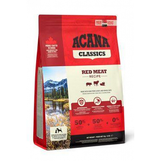 Az ACANA® receptek az elejétől a végéig ízletes, minőségi alapanyagokból készülnek. Az ACANA Classics Red Meat vörös húsok, tápláló gyümölcsök, gabonafélék és zöldségek egyszerű és egészséges összetevőkből készült, laktató és tápláló ételt biztosítanak kutyájának. Olyan tápanyagokban gazdag összetevőket is tartalmaz, amelyek három kulcsfontosságú egészségügyi előnyt támogatnak, köztük az immunrendszer működését, az egészséges emésztést, valamint az egészséges bőrt és szőrzetet.