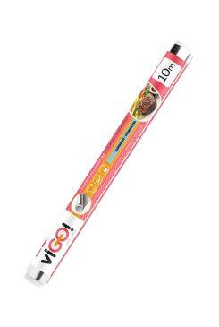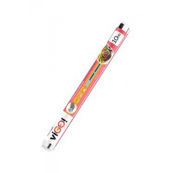 10 m hosszú alufólia tekercs. Az alufólia felhasználása sokoldalú, például uzsonna csomagolására, nem lezárt étel becsomagolására stb. Az alufóliát nem szabad használni mikrohullámú sütőben és savas ételekhez.
