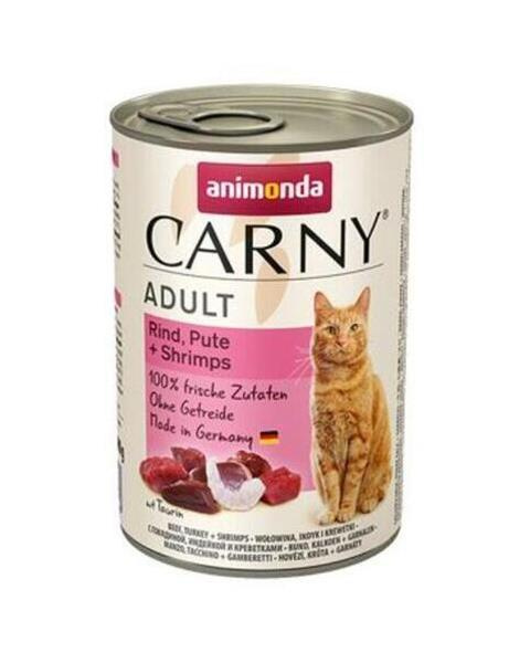 Animonda CARNY® macska Adult marhahús, pulyka és garnélarák bal. 6 x 400 g-os konzervdoboz