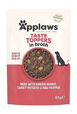 Szeretnéd a kutyusodnak ízletesebbé tenni a tápot, mert már nem annyira ízlik neki? Próbáld ki az Applaws Taste Toppers-t a szárazeledellel együtt, és meglátod. A Taste Toppers kollekció széles választékát kínálja ízvariációknak húsos konzervekben, tasakokban és leveses zacskókban. Ideális a szokásos granulált takarmány ízének javítására, vonzóbbá tételére és változatossá tételére. Az Applaws Taste Toppers segítségével hónapokig ugyanazt a tápot adhatja kutyájának (válasszon csak minőségi termékeket), és minden nap más ízzel teheti változatosabbá. Önmagában is kínálhatja uzsonnaként vagy teljes értékű takarmány kiegészítőjeként.