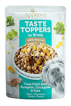 Az Applaws Taste Toppers ízletes kiegészítő eledelt kínál kutyáknak. Próbáld ki az Applaws tasakot a száraztáppal együtt, és a tál üres lesz, mielőtt azt mondanád, hogy "lehet". Tonhalfilék ízletes hallevesben, sütőtökkel, csicseriborsóval és kelkáposztával együtt nagyon csábító kombinációt alkotnak, tele halízzel. Azoknak a kutyáknak, akik nem szeretik a száraz tápot, ez nagyszerű csali, hogy habozás nélkül nekilássanak az ételüknek.
