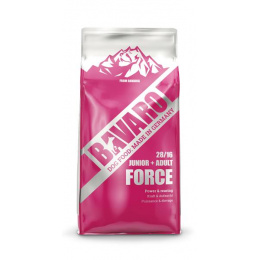 BAVARO Junior/Adult Force 18 kg - Teljes értékű és tápláló eledel kölyökkutyáknak a második hónaptól, valamint felnőtt kutyáknak. Táplálkozás, energia és vitalitás. Recept tartósítószerek és mesterséges adalékanyagok nélkül. Optimális granulátumméret. - Tápláló eledel kölyökkutyáknak a második hónaptól kezdve. Könnyen emészthető eledel finom és egyben lágy ízzel. Recept tartósítószerek, mesterséges aromák és színezékek nélkül. Az értékes tápanyagok támogatják kutyája egészséges növekedését és fejlődését, valamint erősítik az immunrendszert. Ízletes granulátumok energiát és vitalitást biztosítanak. Egyúttal gondoskodnak az ízületekről és az egészséges szőrzet növekedéséről. Kiegyensúlyozott arányú vitaminok, ásványi anyagok és nyomelemek. A rost természetes módon serkenti a bél mikroflórát.
