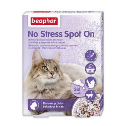 a Beaphar No Stress Spot On minden fajta és korú macska számára alkalmas. Csökkenti a macskák stresszét és nyugodt állapotban tartja őket a mikrokapszulákban található valeriánakivonat nyugtató hatásának köszönhetően. Ezek a lassú felszabadulás és a hosszan tartó hatás elve alapján működnek. Használható túlzott nyávogás vagy fröcsögés esetén, ha a kutya elválasztás, állatorvosi látogatás, utazás, vihar, vagy destruktív vagy nemkívánatos területi viselkedés miatt túlzottan nyávog vagy fröcsög.