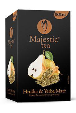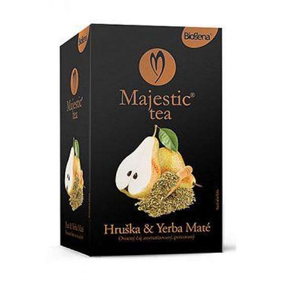 A Majestic Tea Körte és Yerba Maté gyümölcstea, amely gyönyörűen illatozik a körtétől, és a Yerba maté révén tele van vitaminokkal és antioxidánsokkal.