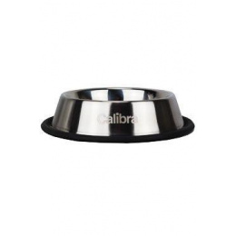Rozsdamentes acél ételtál kutyáknak vagy macskáknak, fekete csúszásmentes gumival a peremén.