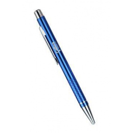 Fém golyóstoll krómozott tartozékokkal (hegy, gomb, klipsz). A toll újratöltése kék zselés.