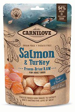 Fagyasztva szárított kutyaeledel és feltét a nyers hús ellenállhatatlan ízével és előnyeivel - multiprotein - lazac és pulyka.