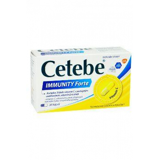 A Cetebe® IMMUNITY Forte 3 anyagból álló komplexet tartalmaz: fokozatosan felszabaduló C-vitamin, D-vitamin és cink, amelyek hozzájárulnak az immunrendszer normál működéséhez.