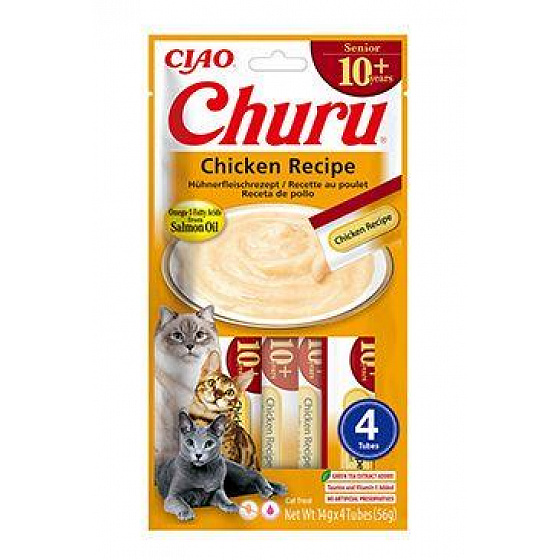 Churu Senior 10+ csirkével egy finom, krémes jutalomfalat, amelyet kifejezetten 10 év feletti macskák számára fejlesztettek ki. Tartalmaz Omega-3 zsírsavakat az agyműködés támogatására, C- és E-vitamint az immunrendszerért, valamint taurint az egészséges látásért és szívért. Alacsony kalóriatartalmú, nem tartalmaz tartósítószereket, mesterséges színezékeket vagy állati melléktermékeket. A magas nedvességtartalomnak (85%) köszönhetően segít a hidratálásban.