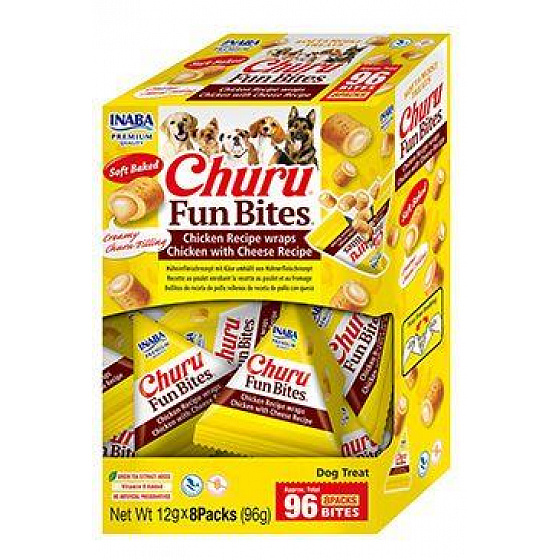 Churu Fun Bites finom párnás falatok lágy krémes középpel, amelyek ötvözik a puha textúrát az ellenállhatatlan ízzel. Kiváló minőségű alapanyagokból készülnek, mint például természetes tanyasi csirke és sajt, nem tartalmaznak gabonaféléket, tartósítószereket vagy mesterséges színezékeket. Az E-vitamin tartalmának köszönhetően támogatják az idegrendszer egészségét, az immunitást és a háziállatok általános vitalitását. Rázza meg a csomagot, hogy felkeltse kutyája figyelmét, és élvezze a sok szórakozást.