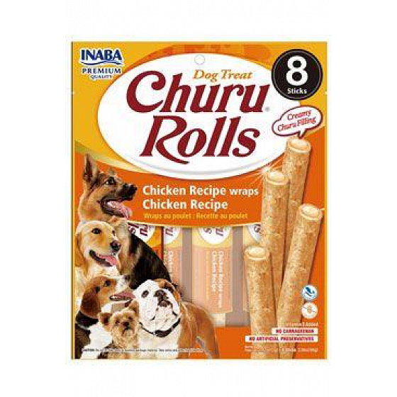 Puha, párna alakú, Churu húspürével töltött jutalomfalat kutyáknak tenyésztett csirkehússal. szaftos, puha és extra finom húscsemegék gabonafélék nélkül.