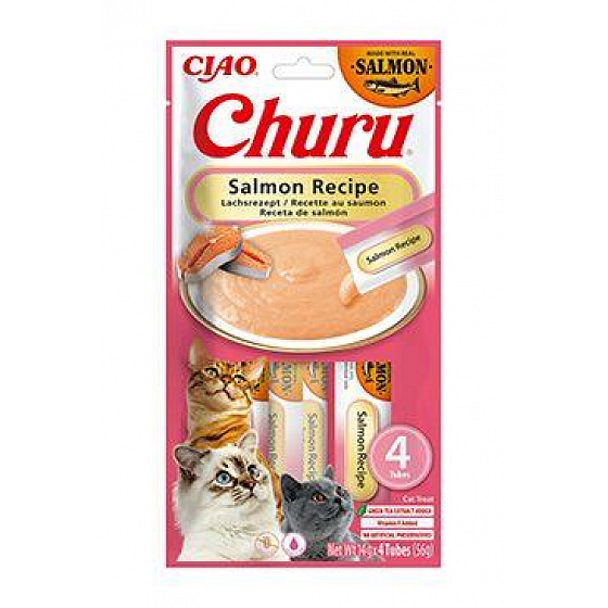 Churu Salmon egy krémes nyalogatós csemege, amely magas lazactartalommal (akár 30%) rendelkezik, és nemcsak finom ízt nyújt a macskáknak, hanem fontos tápanyagokat is biztosít az egészséges szőrzethez, bőrhöz és általános vitalitáshoz. A magas nedvességtartalomnak (83,5 %) köszönhetően segít a hidratálásban. Nem tartalmaz tartósítószereket, mesterséges színezékeket vagy állati melléktermékeket. Ideális jutalomként, étrend-kiegészítőként vagy szórakoztató módon, hogy erősebb köteléket alakítson ki kedvencével.