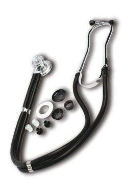 Professzionális Rappaport típusú fonendoszkópok nagy sűrűségű, krómozott cinkötvözetből készült mellkasi jelátalakítókkal a kiváló hangátvitel érdekében. Két 560 mm vastag falú, latexmentes cső biztosítja a mellkasi jelátalakítótól mindkét fülbe történő egyedi hangátvitelt. A kiváló átvitelt a nagyméretű binaurális krómozott sárgaréz biztosítja. A tartozékkészlet tartalmaz egy krómozott cinkötvözetből készült mellkasi transzducert felnőtt és gyermek betegek számára, három fekete műanyag, nem hűtött transzducert, két különböző méretű csere membránt és két pár fülkagylót. A teljes hossz 730 mm, a fej átmérője 45/32 mm.