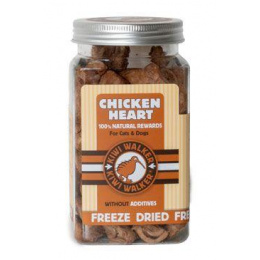 100% fagyasztva szárított csirkeszív, természetes, hozzáadott anyagok és tartósítószerek nélkül, valódi apró húsdarabokat tartalmaz, nagyszerű egészséges jutalomfalat.