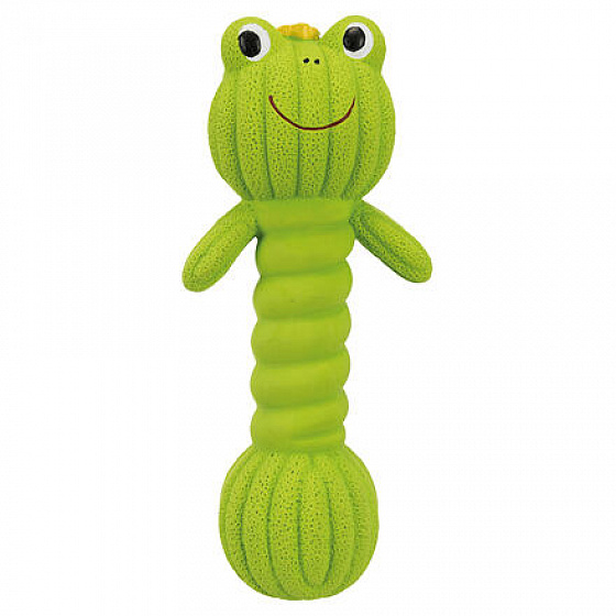 Dumpbell béka, béka/csincsilla, latex, hanggal, 18cm