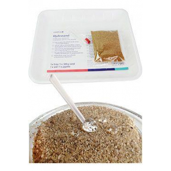 - 1x hidrofób homokot (300 g), 1x tálcát, 1x pipettát és 1x csövet tartalmazó készlet,