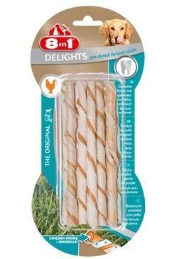 A 8in1 Delights Twist rágó rudacskák csavartak, és méretük megfelel a kis és közepes méretű kutyáknak. A Delights Twist kutyakaják nyersbőrt és ízletes húst tartalmaznak. Feladatuk a lepedék eltávolítása és a fogkő kialakulásának megelőzése. A csirke és az alacsony zsírtartalmú szeletek hosszan tartó rágási élményt nyújtanak.