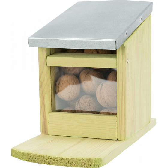 Etetőállomás mókusoknak 12 x18 x 24 cm, natúr fenyőfa/fém