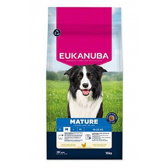 Ez a friss csirkehúsos száraz eledel kifejezetten 7-10 éves közepes méretű fajtájú idős kutyák számára készült. A kiválasztott összetevőknek köszönhetően személyre szabott táplálékot nyújt az egészséges öregedés és az általános vitalitás támogatására. Az L-karnitin segít a zsírégetésben, ezáltal hozzájárul az optimális testsúly fenntartásához és az ízületek terhelésének csökkentéséhez. Testreszabott rostkeverék prebiotikumokkal, fruktooligoszacharidokkal és cukorrépapéppel támogatja az egészséges emésztést, míg a glükózamin fenntartja az egészséges ízületeket és a kalcium erős csontokat. Az omega-6 és omega-3 zsírsavak természetes forrásai támogatják az egészséges bőrt és a fényes szőrzetet, míg az E-vitaminnal dúsított antioxidáns keverék erősíti a kutya immunrendszerét. Az egyedülálló hatszögletű EUKANUBA granulátumok a DentaDefense fogápolási rendszerrel kombinálva hosszú távon segítenek tisztán és egészségesen tartani a fogakat. Ez a 100%-ban teljes és kiegyensúlyozott eledel fejlett táplálékot biztosít a közepes méretű fajták idős kutyáinak optimális testi kondíciójának és élethosszig tartó jólétének támogatására. Az EUKANUBA vállalat kiváló minőségű tápot biztosít kutyája életének minden szakaszára.