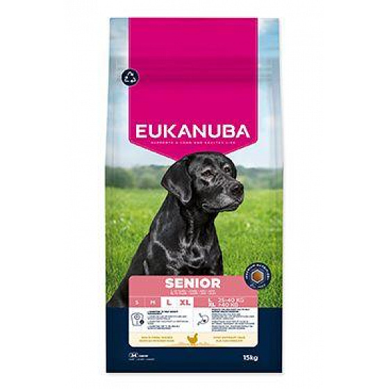 Ez a friss csirkehúsos száraz eledel kifejezetten 9 évnél idősebb nagytestű idős kutyák számára készült (vagy 8 évnél idősebb óriás fajták esetén). A kiválasztott összetevőknek köszönhetően személyre szabott táplálékot nyújt az egészséges öregedés és az általános vitalitás támogatására. Az L-karnitin segít a testsúly szabályozásában, ezáltal hozzájárul az optimális testsúly fenntartásához és az ízületek terhelésének csökkentéséhez. Testreszabott rostkeverék prebiotikumokkal, fruktooligoszacharidokkal és cukorrépapéppel támogatja az egészséges emésztést, míg a glükózamin és a kondroitin fenntartja az egészséges ízületeket, a kalcium pedig erős csontokat biztosít. Az omega-6 és omega-3 zsírsavak természetes forrásai támogatják az egészséges bőrt és a fényes szőrzetet, míg az E-vitaminnal dúsított antioxidáns keverék erősíti a kutya immunrendszerét. Az egyedülálló hatszögletű EUKANUBA granulátumok a DentaDefense fogápolási rendszerrel kombinálva hosszú távon tisztán és egészségesen tartják a fogakat. Ez a 100%-ban teljes és kiegyensúlyozott eledel fejlett táplálékot biztosít a nagytestű idős kutyák optimális testi kondíciójának és élethosszig tartó jólétének támogatására. Válassza az EUKANUBA tápot, és biztosítson kutyájának minőségi táplálékot, amely életének minden szakaszához igazodik.