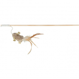 Fából készült horgászbot plüss egérrel és tollakkal 50 cm