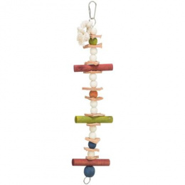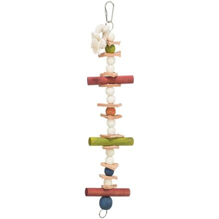 Fából készült játék, kötél színes golyókkal és bőrrel, 28 cm