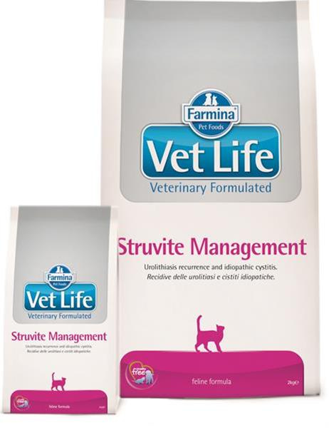 Farmina Vet Life Struvite Management egy teljes értékű diétás takarmány macskák számára, amely a struvit kövek feloldására és újbóli kialakulásának csökkentésére szolgál. Alkalmas az alsó húgyúti betegségek esetén is.