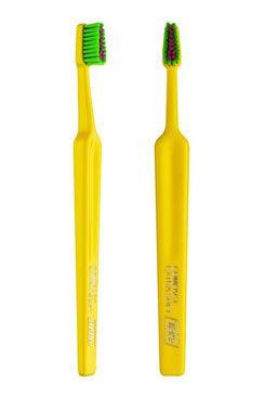 TePe Kids x-soft, gyermekfogkefe 3 éves kortól alkalmas kis háromszög alakú fej 2760 extra puha szálak egyenes vágással, fogorvosok által ajánlott könnyű eltávolítani a lepedéket a nehezen hozzáférhető helyekről kíméletes a gyermekek érzékeny ínyéhez ergonomikus fogantyú a megfelelő fogás gyakorlásához a kefefej dőlésszöge forró vízben való melegítéssel és a nyak kívánt pozícióba hajlításával állítható be