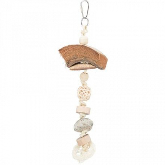 Függőleges természetes játék papagájoknak, kókusz/rattan/lávakő, 35 cm