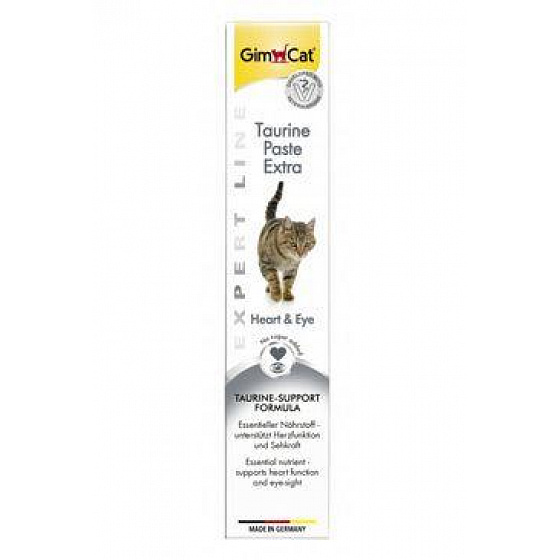 A taurin egy esszenciális aminosav, amelyre a macskáknak az egészséges látáshoz és a szívizom jó működéséhez van szükségük. A macskák nem tudnak taurint szintetizálni a szervezetükben, ezért elegendő taurint kell bevinniük a napi étrendjükkel. A Gimcat Taurine Paste Extra innovatív bioaktív taurinnal hatékonyan segít pótolni a macska étrendjéből hiányzó taurint. A taurin és a hátsó héjból származó kivonatok kiváló kombinációja jelentősen erősíti a szívműködést és javítja a látást. A paszta B-vitamint és kalciumot is tartalmaz, amelyek segítik a macska idegrendszerének és energia-anyagcseréjének jobb működését.