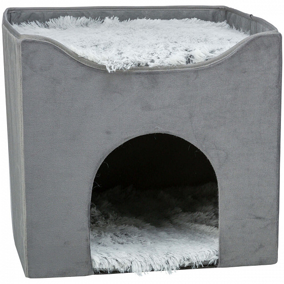 HARVEY plüss fészek tetőággyal, 38 x 38 x 38 cm, szürke/fehér-fekete