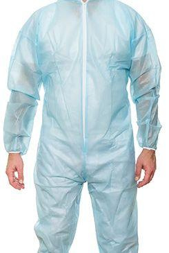 Egyszer használatos overál kapucnival és cipzárral. Készült PP-spunbond szövetből, 40 g/m2.