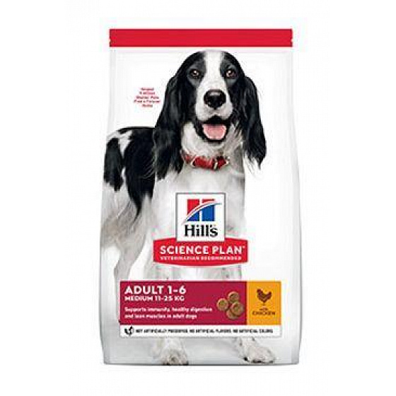 A Hill's Science Plan közepes méretű felnőtt kutyáknak csirkehússal kifejezetten a kutyák energiaszükségletének kielégítésére készült a legjobb éveikben. Kiváló minőségű, könnyen emészthető összetevőkből készült.
