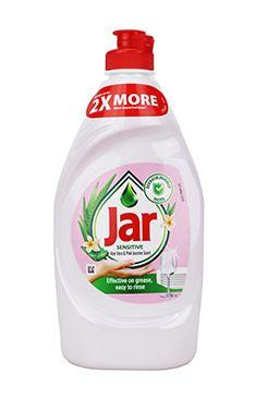 A Jar mosogatószer egy koncentrált kézi mosogatószer aloe vera és jázmin illattal. A hatékony összetételének köszönhetően kis mennyiségű termék elegendő nagy mennyiségű edényhez. Hosszú ideig tartó aktív habja van. Könnyedén megbirkózik a szennyeződéssel és a zsírral.