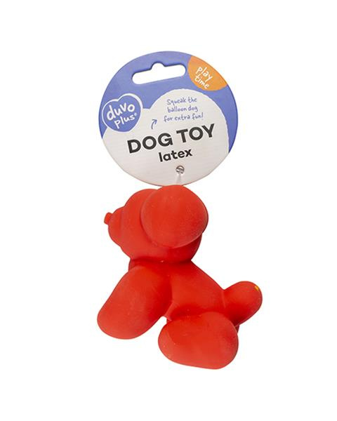 Játék DUVO+ latex léggömb mopsz, nyikorgó, piros 9,5x6x8,5 cm