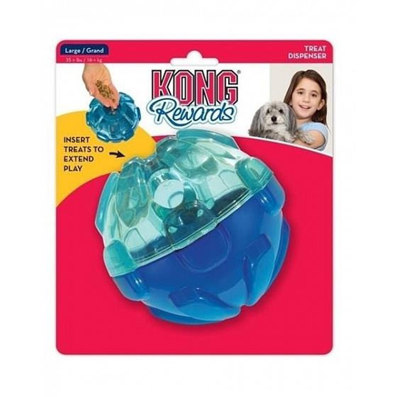Játék Kong Dog Rewards tölteléklabda, kék, hőre lágyuló gumi, L - átmérő 10,5 cm