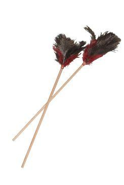 Fa pálca fa nyéllel és valódi strucctollal, színes tollakkal kiegészítve.