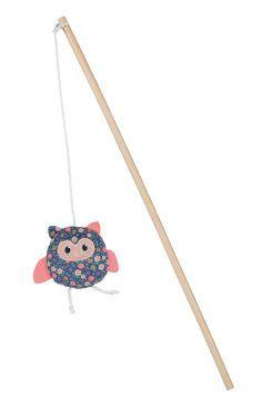Macskajáték macskamentával, bambusz horgászbot, virágmintával.