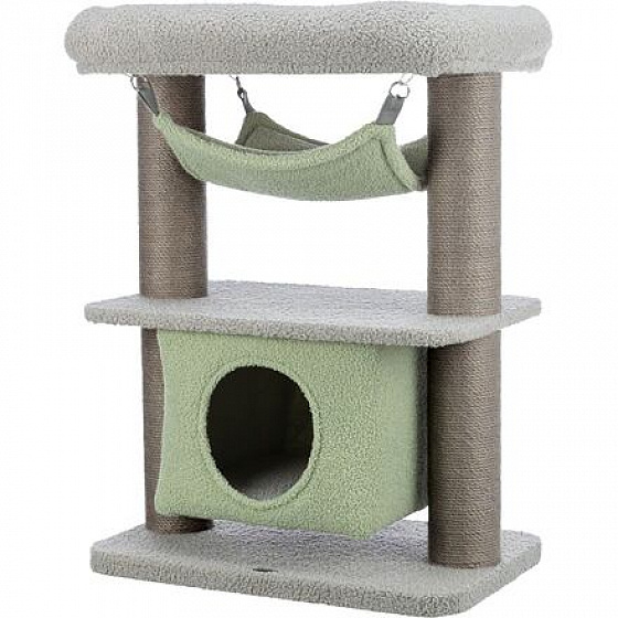 JUNIOR kaparófa LUNITO, 2 szintes, barlang, függőágy, 71 cm, szürke/menta