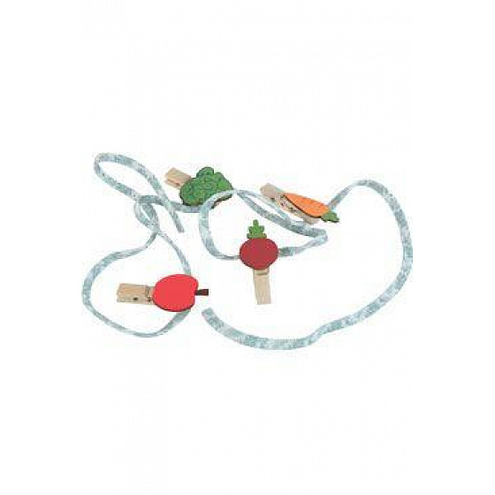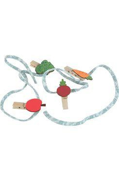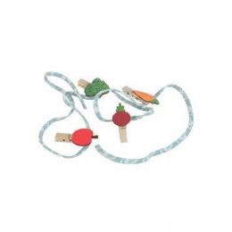 A zöldségeket 4 díszes fa csipesz segítségével rögzítheti a kötélre.