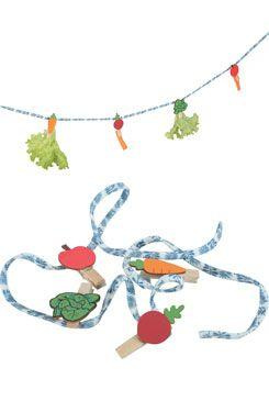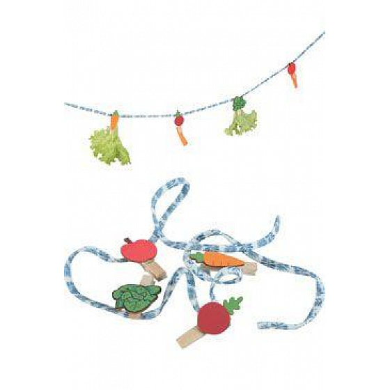 A zöldségeket 4 díszes fa csipesz segítségével rögzítheti a kötélre.