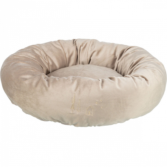 Karácsonyi bársony fekhely LIVIA, kerek peremmel, 50 cm, bézs