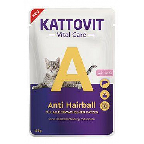 A Kattovit Vital Care Anti Hairball Salmon azonban nemcsak a szőrlabdák kialakulásának csökkentésében segít, hanem kiegyensúlyozott összetételével is pontokat szerez, amely biztosítja szőrös barátja számára az összes fontos tápanyagot, amelyre a létfontosságú élethez szüksége van. A gazdag mártásban lévő lazacos zsenge darabok finom összetétele a magas nedvességtartalomnak köszönhetően elegendő folyadékbevitelt biztosít, és olyan értékes létfontosságú anyagokkal látja el, mint a taurin és az A-vitamin. Finom nedves eledel felnőtt macskák számára. Kiszáradás elleni készítmény: a hozzáadott maláta segít eltávolítani a lenyelt szőrszálakat. Finom íz: zsenge darabok lazaccal fűszeres mártásban. Kiegyensúlyozott formula: vitaminokat és ásványi anyagokat biztosít, beleértve az A-vitamint, amely segít az immunrendszer támogatásában. Taurinforrás: a normál látáshoz. Magas nedvességtartalom: elegendő folyadékbevitelt biztosít. Teljes étrend minden napra: fedezi az összes fontos tápanyag napi szükségletét. Zsebekben: gyakorlatilag előre vágva.