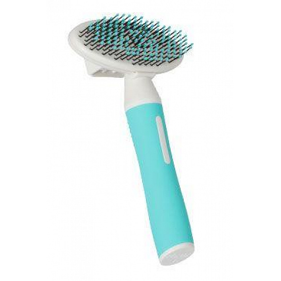 Kíméletes visszahúzható szőrtelenítő kefe közepes és hosszú szőrű kölyökkutyáknak. Kibontja, eltávolítja a laza szőrzetet és kisimítja a szőrzetet.