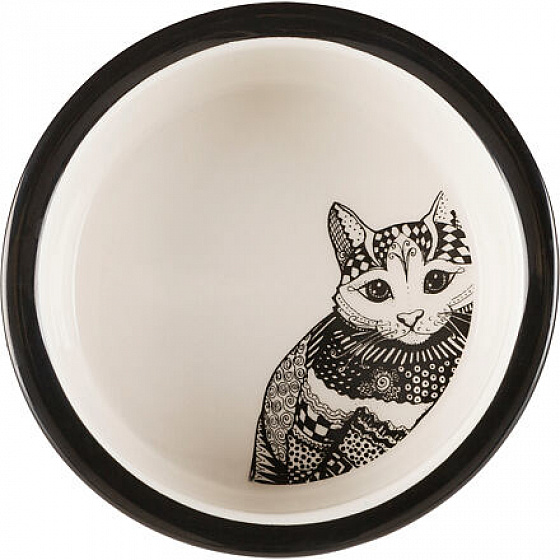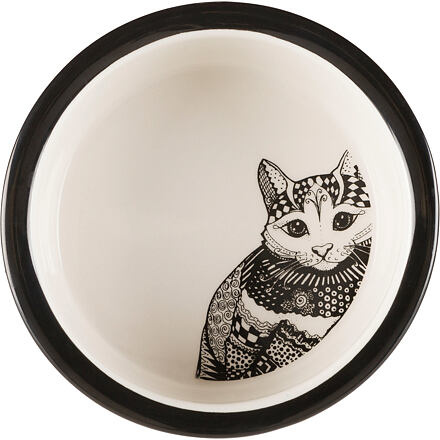 Kerámia macskatál Zentangle 0,3l/12 cm fehér/fekete