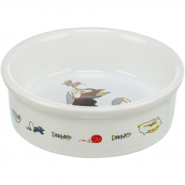 Kerámia tál fehér, macska és egér 200ml/11cm