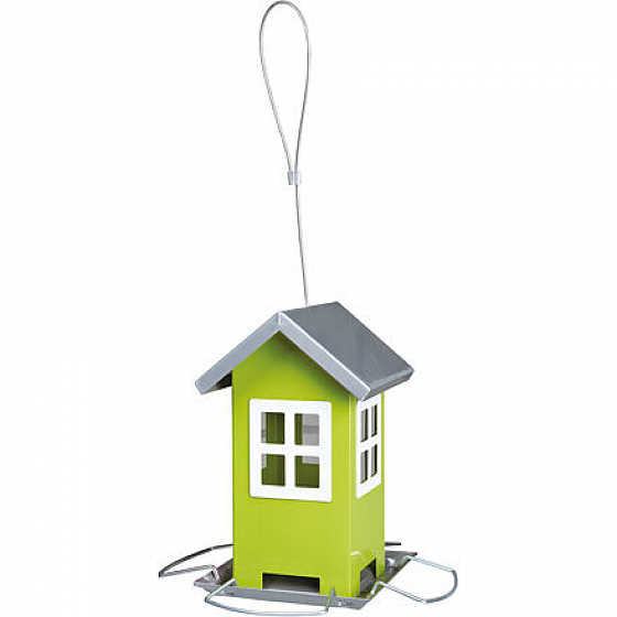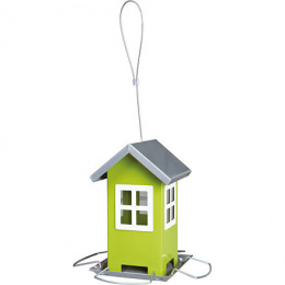 Kerti etető fém, színes ház 19x20x19 cm, - zöld/ezüst tetővel